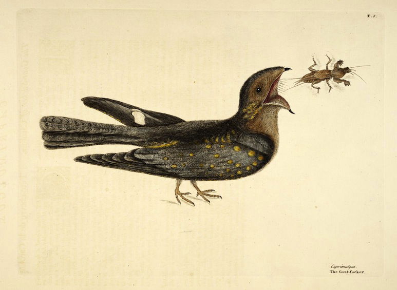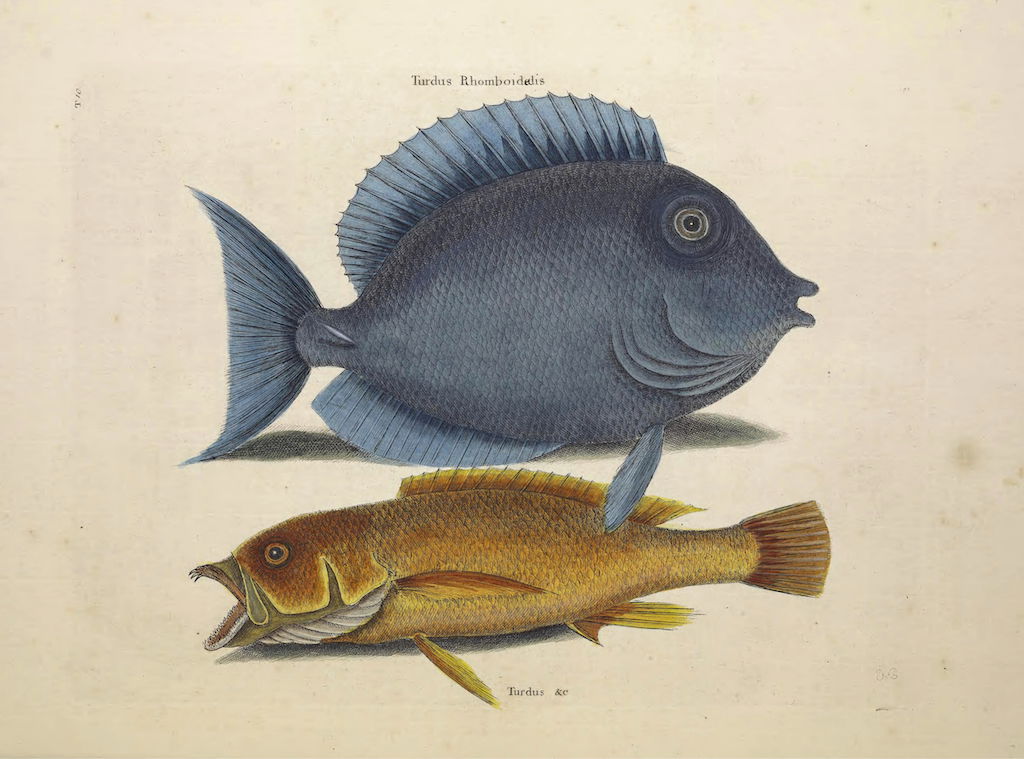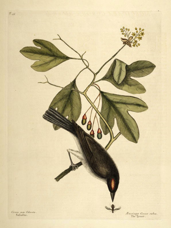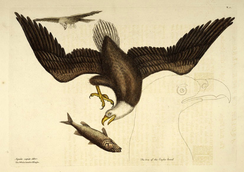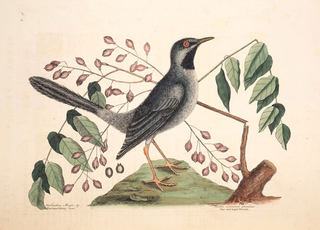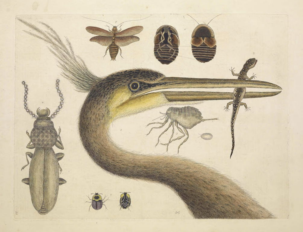 A selection of birds as featured in Volume 1 of (the magnificently titled) Natural History of Carolina, Florida, and the Bahama Islands: containing the figures of birds, beasts, fishes, serpents, insects, and plants: particulary the forest-trees, shrubs, and other plants, not hitherto described, or very incorrectly figured by authors. Together with their descriptions in English and French. To which are added, observations on the air, soil, and waters: with remarks upon agriculture, grain, pulse, roots, &c., by Mark Catesby and George Edwards.