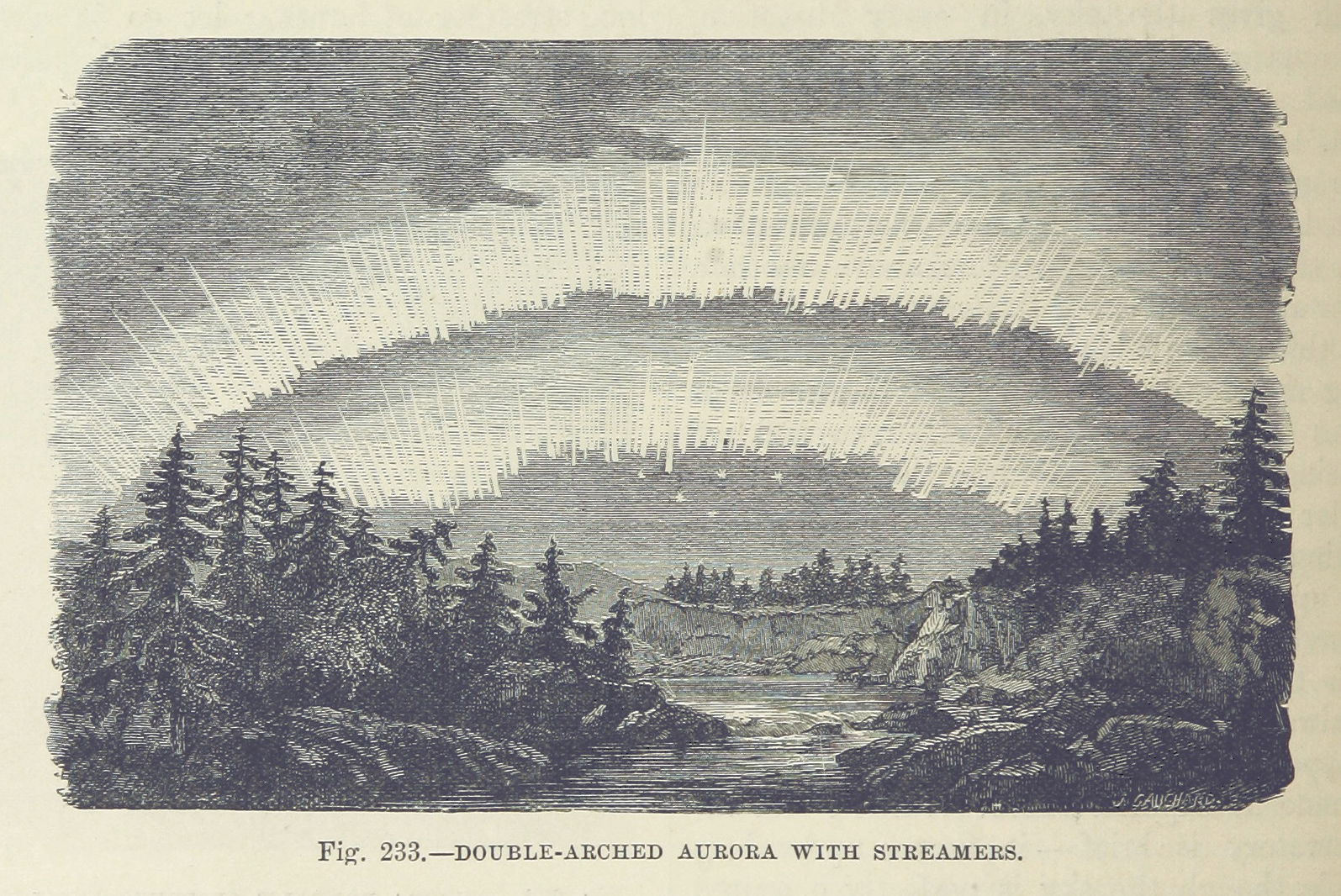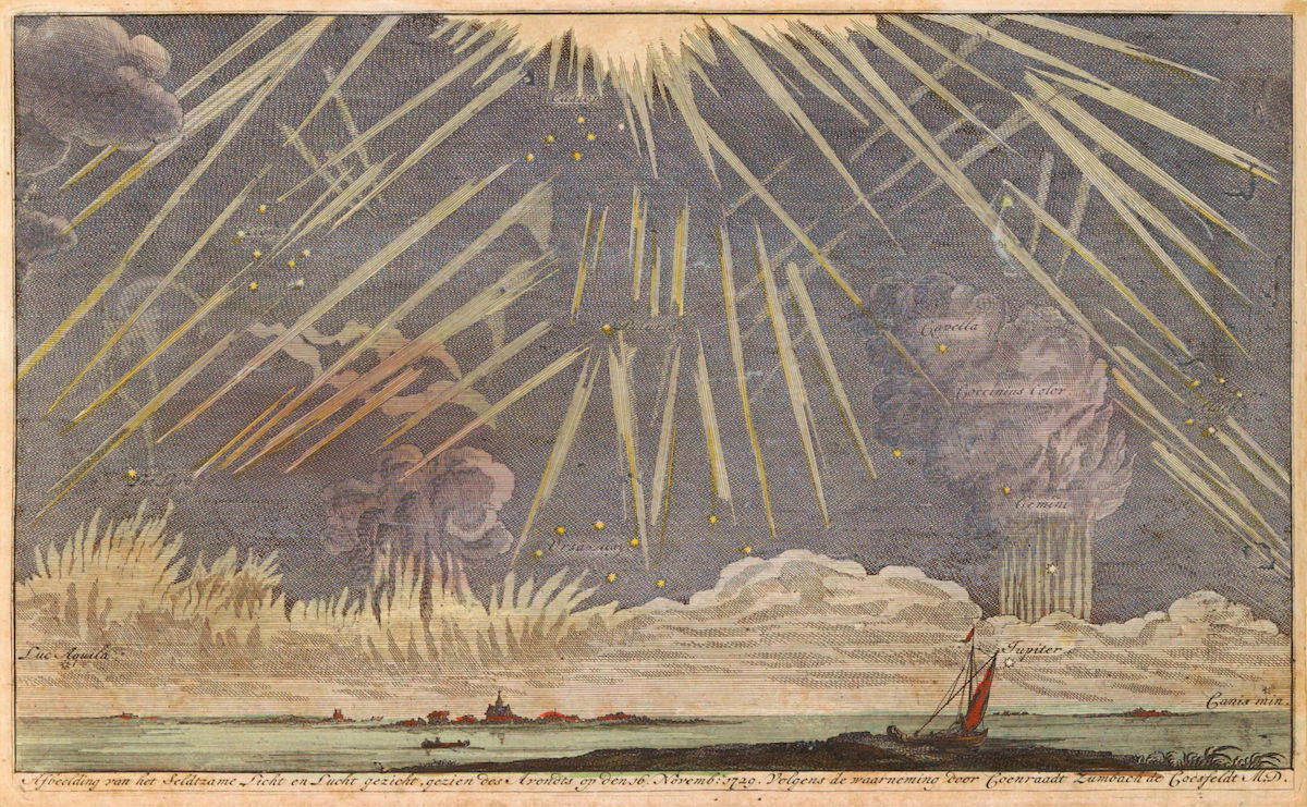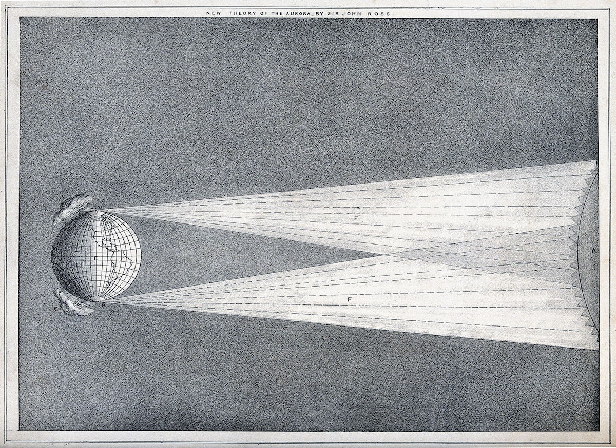 About fifty miles above sea level, far beyond the outer reaches of the ozone layer, there lies a huge stretch of air called the thermosphere, where temperatures soar to 2000° Centigrade. Particles in this part of the sky are so scarce that, as Lyall Watson writes, “not enough of them strike a body in orbit to transfer such awesome heat,” though there are more than enough to “combine with other charged particles thrown into the edges of our atmosphere by gusts of solar wind” and create the “awesome display of pyrotechnics” we call the Aurora Borealis and Aurora Australis, or the Northern and Southern Lights: