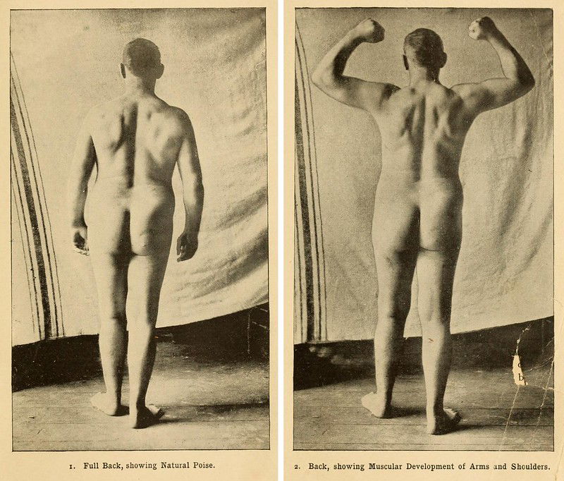 Two photographs showing Sullivan’s physique in the “Report of Dr D.A. Sargent’s Examination”, and appendage to Sullivan’s autobiography, Life and Reminiscences of a 19th Century Gladiator (1892).